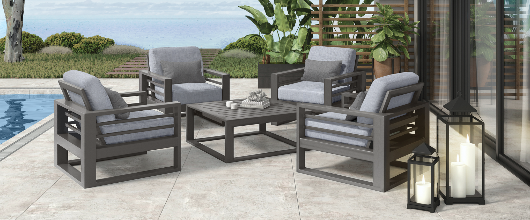 Palermo Collection is designed to elevate any setting, whether you're entertaining by the water or relaxing on an upscale rooftop. With flexible configurations to suit your space, this modern collection blends style and versatility effortlessly. Featuring high-back seating, deep cushions, and sectional pieces, Palermo delivers exceptional comfort while creating a sophisticated outdoor living experience.